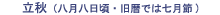 暦の上では秋に入りますが、残暑が厳しく、残暑見舞いの季で、暑中見舞いは立秋の前日までに出します。